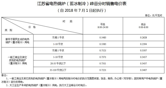 3.江蘇省電熱鍋爐(蓄冰制冷)峰谷分時銷售電價表(自2018年7月1日起執(zhí)行)