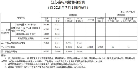 附件:1.江蘇省電網(wǎng)銷售電價表(自2018年7月1日起執(zhí)行)