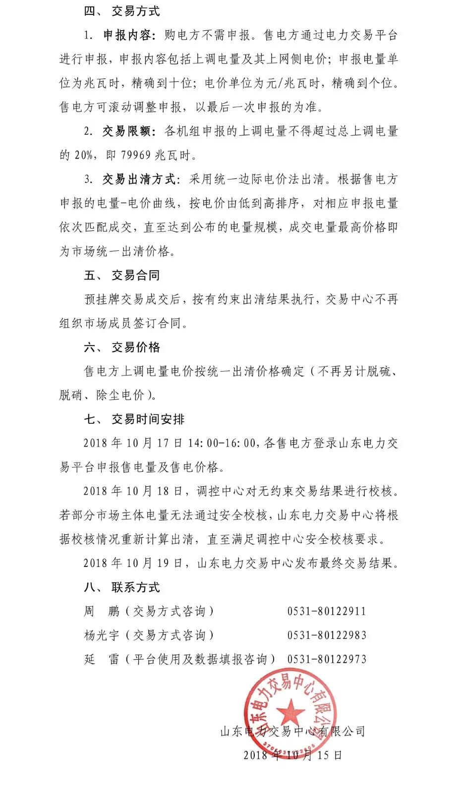 2018年10月19日,山東電力交易中心發(fā)布最終交易結(jié)果。