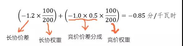 舉個例子:一家公司當月用電200萬千瓦時,其中100萬千瓦時為長協(xié)電量,約定價差為-1.2分/千瓦時,售電公司不分成;另外100萬千瓦時為競價電量,當月平臺出清價差為-1分/千瓦時,用戶和售電公司5:5進行分成。那么計算方法如下: