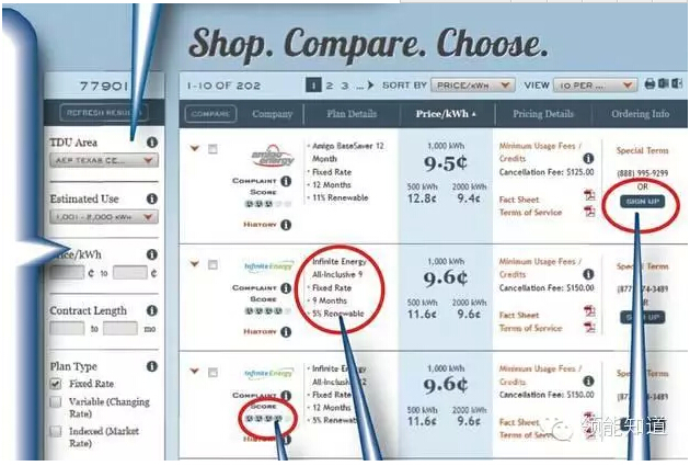 德州以能源和化石工業(yè)著稱,是全美電力消費(fèi)量最多的州。為了方便用戶選擇合適的售電商和用電方案,自2002年正式實(shí)施電力零售自由化開(kāi)始,德州公共事業(yè)管理委員會(huì)(Public Utility Commission Texas, PUCT)就針對(duì)用戶側(cè)的培育開(kāi)展了眾多工作,其中較有特色的成果就是組織開(kāi)發(fā)了PowerToChoose.com網(wǎng)站。通過(guò)該網(wǎng)站,用戶可以方便地查詢不同電力零售商的信息以及其提供的用電方案,進(jìn)一步地可在線轉(zhuǎn)換零售商。