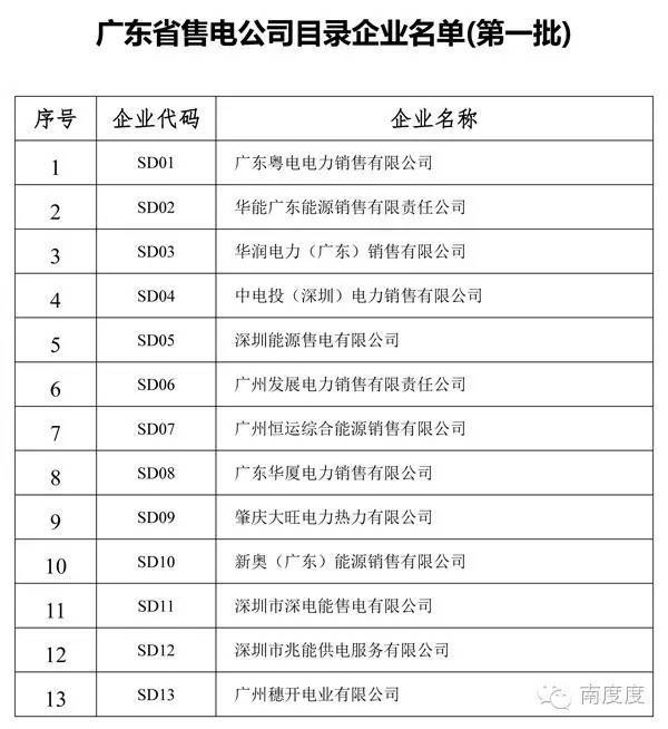 廣東省售電公司目錄企業(yè)名單