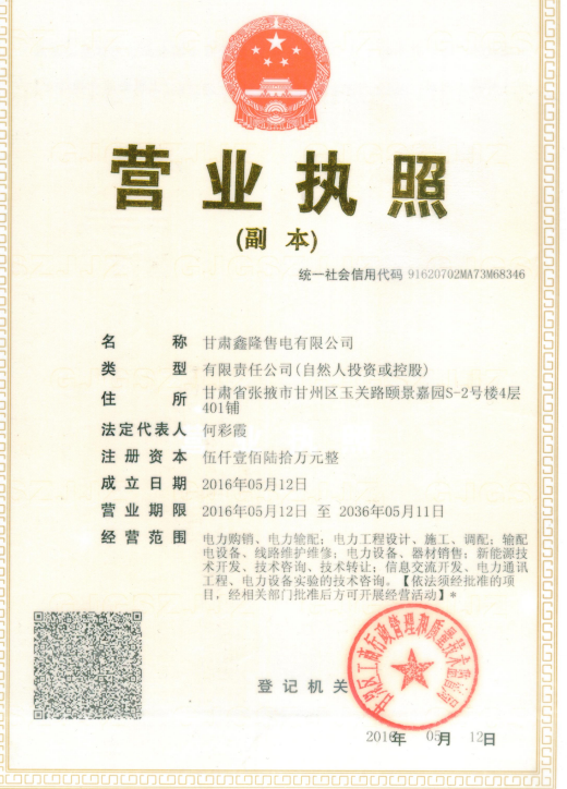 關(guān)于甘肅鑫隆售電有限公司注冊(cè)成為電力自主交易市場(chǎng)主體相關(guān)信息的公示