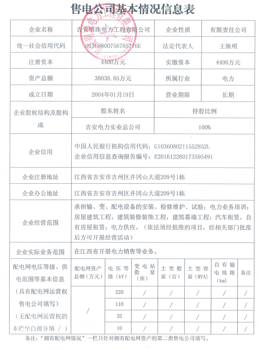 按照國家發(fā)改委、國家能源局《售電公司準入與退出管理辦法》的要求,江西電力交易中心有限公司受理了下列公司的注冊申請,對售電公司提交的市場準入申請材料進行了完整性核驗,現(xiàn)將企業(yè)名單及基本情況予以公示。