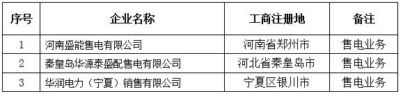 按照國(guó)家發(fā)改委、國(guó)家能源局《售電公司準(zhǔn)入與退出管理辦法》(發(fā)改經(jīng)體〔2016〕2120號(hào))的要求,青海電力交易中心有限公司受理了北京電力交易中心推送的河南盛能售電有限公司等3家售電公司的市場(chǎng)注冊(cè)申請(qǐng),現(xiàn)將企業(yè)名單及基本情況予以公示。