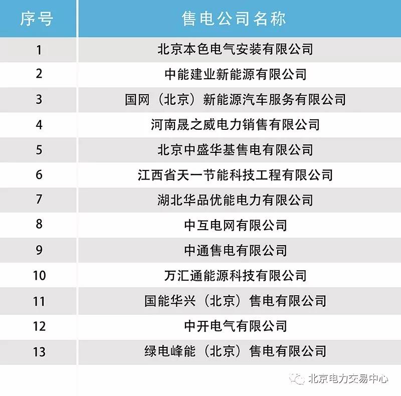 9月3日,北京電力交易中心發(fā)布了售電公司公示結(jié)果公告。按照國家發(fā)改委、國家能源局《售電公司準(zhǔn)入與退出管理辦法》有關(guān)規(guī)定,北京本色電氣安裝有限公司等13家售電公司公示無異議,在北京電力交易中心的注冊自動(dòng)生效。