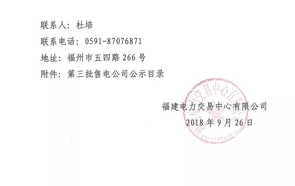 福建電力交易中心有限公司關(guān)于公示第三批受理注冊(cè)售電公司相關(guān)信息的公告