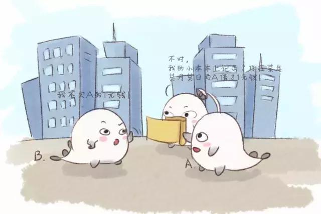 假設B向A借了1塊錢,這個時候,城市里的人怎么辦呢?A在人群中大喊:“我是A,我借給了B1塊錢!”B也在人群中大喊:“我是B,A借給了我1塊錢!”