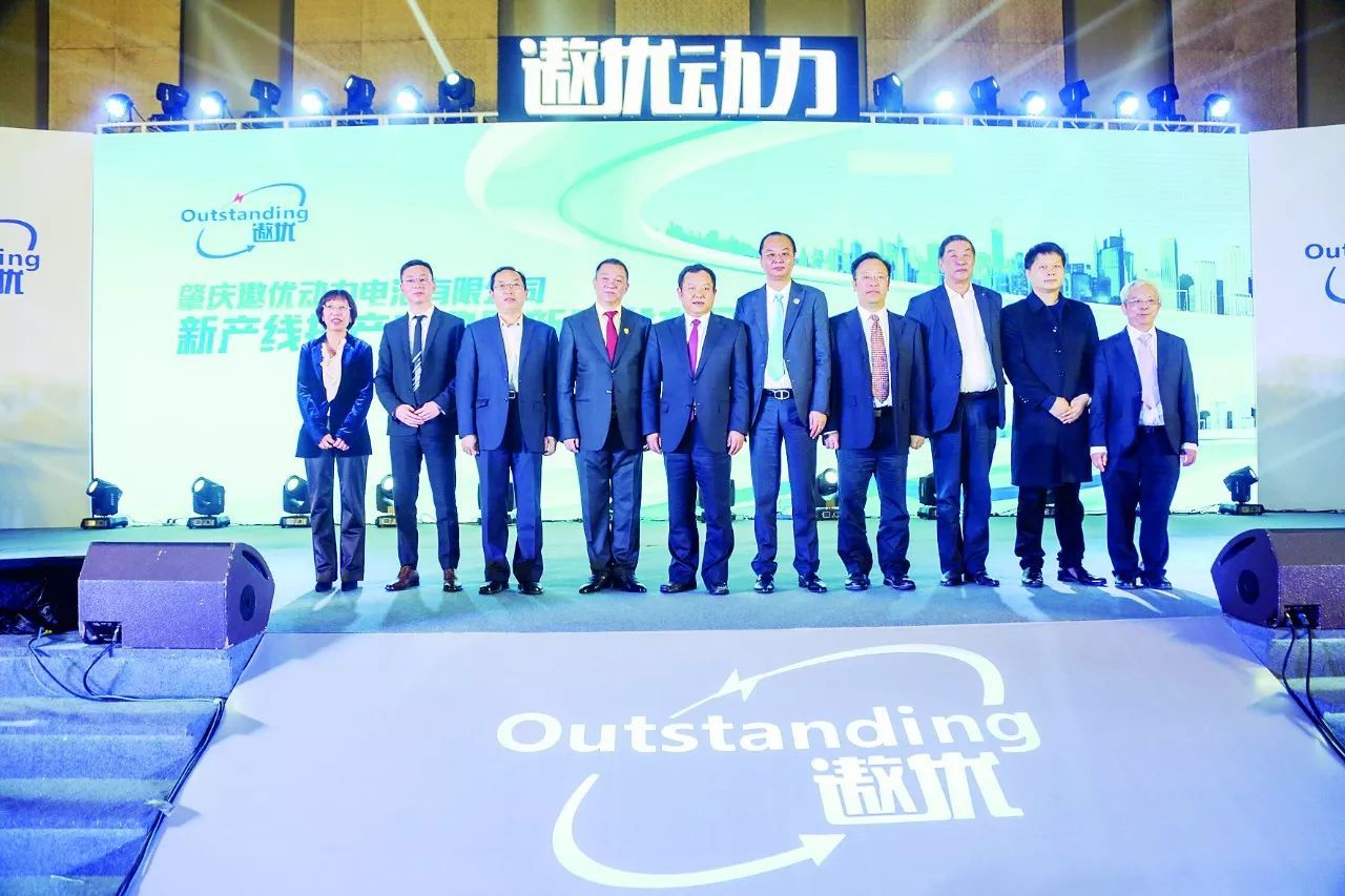 △遨優(yōu)動(dòng)力新產(chǎn)線投產(chǎn)慶典暨新品發(fā)布會(huì)現(xiàn)場(chǎng)領(lǐng)導(dǎo)合照 遨優(yōu)動(dòng)力/供圖