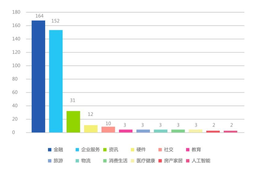 據(jù)七麥數(shù)據(jù)報(bào)告顯示,在我國全部區(qū)塊鏈創(chuàng)業(yè)項(xiàng)目中,金融類占比最高,達(dá)到 42.72%,企業(yè)服務(wù)類占比達(dá) 39.18%,這兩類項(xiàng)目共計(jì)占比高達(dá) 81.44%