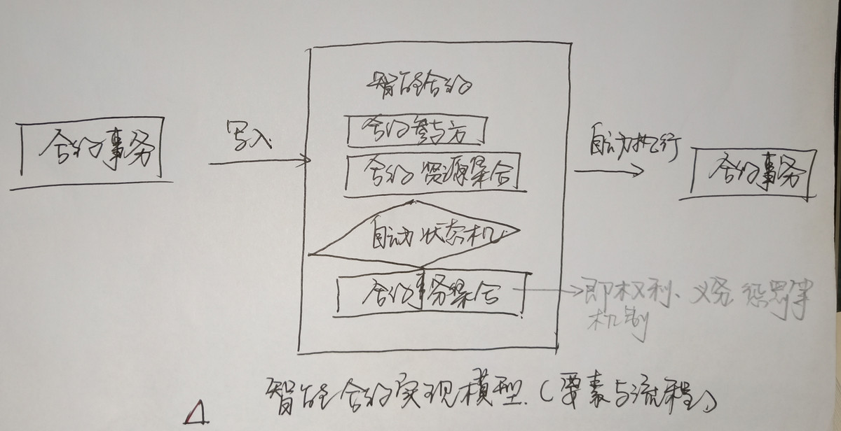 智能合約實現(xiàn)的一個基本要素:合約參與者、合約資源集合、自動狀態(tài)機、合約事務(wù)集合(合約中下一步動作、行為,控制合約資產(chǎn)以及對外界信息進行回應(yīng)的集合)。
