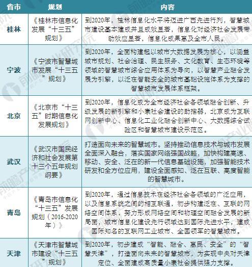 圖表3:部分智慧城市建設(shè)規(guī)劃要點(diǎn)