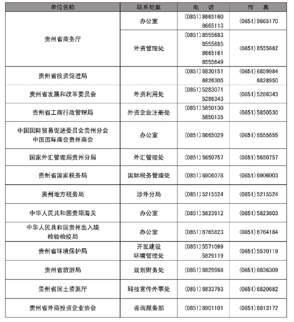 貴州各經(jīng)濟(jì)開發(fā)區(qū)服務(wù)機(jī)構(gòu)電話