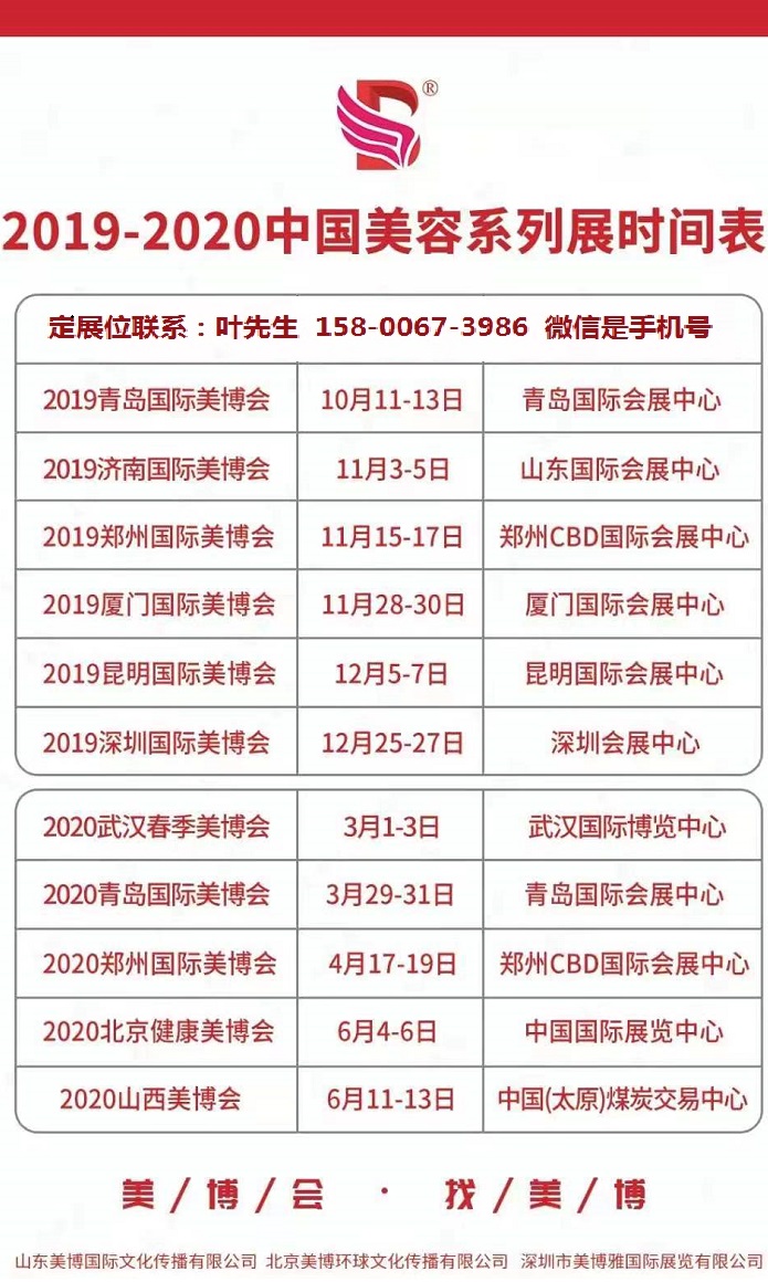 2020年武漢美博會(huì) 展出時(shí)間:2020年3月1-3日 展出地點(diǎn):武漢國際會(huì)展中心