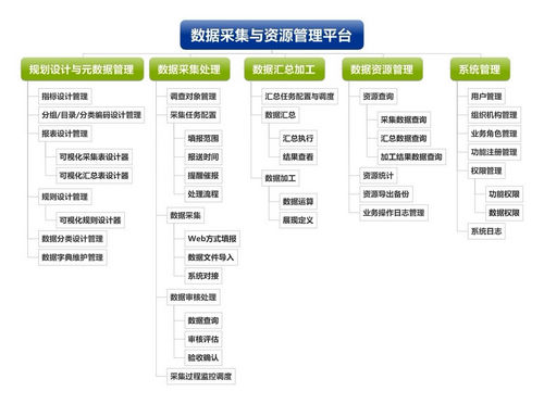 采集任務(wù)設(shè)計(jì)管理:對(duì)數(shù)據(jù)采集的形式、內(nèi)容、載體(如采集報(bào)表)和數(shù)據(jù)標(biāo)準(zhǔn)(元數(shù)據(jù))、數(shù)據(jù)質(zhì)量要求,進(jìn)行設(shè)計(jì)和維護(hù)管理;
