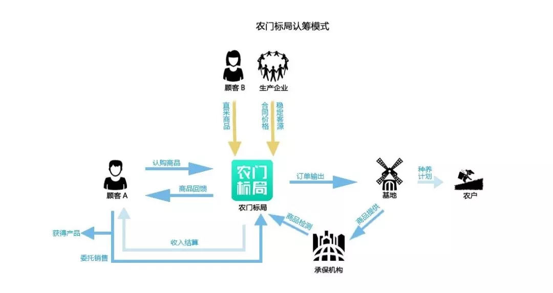 正如同農(nóng)門標局提出的"市民+平臺+企業(yè)+農(nóng)戶"的認籌項目,市民可通過平臺預訂農(nóng)產(chǎn)品,然后由農(nóng)戶根據(jù)訂單組織生產(chǎn),整條供應鏈由過去的"產(chǎn)供銷"變成了"銷供產(chǎn)"。