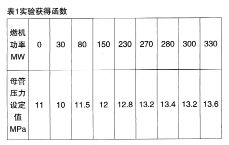 手動在安全范圍內(nèi)設(shè)置偏差做細微調(diào)節(jié)。這樣既能避免運行人員手動誤調(diào)整壓力帶來的機組運行風險,又能保證變頻調(diào)節(jié)節(jié)能目標。通過實驗獲得函數(shù)見表1。