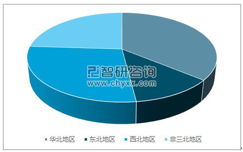2017年上半年各地區(qū)風電累計并網(wǎng)容量全國占比
