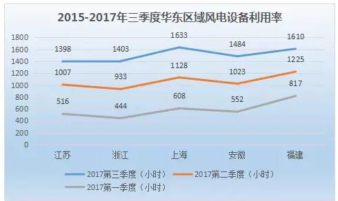 從風(fēng)電設(shè)備利用率上看,華東區(qū)域本年度持續(xù)增長(zhǎng)。截至三季度,上海、福建、安徽、浙江、江蘇風(fēng)電設(shè)備利用率分別為1633小時(shí)、1610小時(shí)、1484小時(shí)、1403小時(shí)、1398小時(shí),與第一季度、第二季度相比,增長(zhǎng)較為穩(wěn)定。