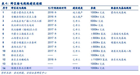 根據(jù)此前特高壓線路建設相關規(guī)劃,2016 年還有兩條特高壓線路已竣工投產(chǎn),2017 年更是新增 8 條特高壓線路竣工投產(chǎn),這 8 條線路中有 4 條對接了限電地區(qū)風電場,投運后將對內(nèi)蒙古、山西、甘肅的風電消納問題產(chǎn)生積極影響。