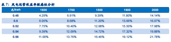 較高的風電運營收益率是推動行業(yè)發(fā)展的核心驅動因素,同時也是風電招標量維持高位的根本原因。影響風電運營內部收益率的核心因素是利用小時數(shù)和標桿上網(wǎng)電價。我們以三類資源區(qū)為例,按照我們的假設,在風電利用小時數(shù)為 1900 小時,標桿上網(wǎng)電價為 0.54 元/kwh 的情況下,風電運營收益率在 15%左右。