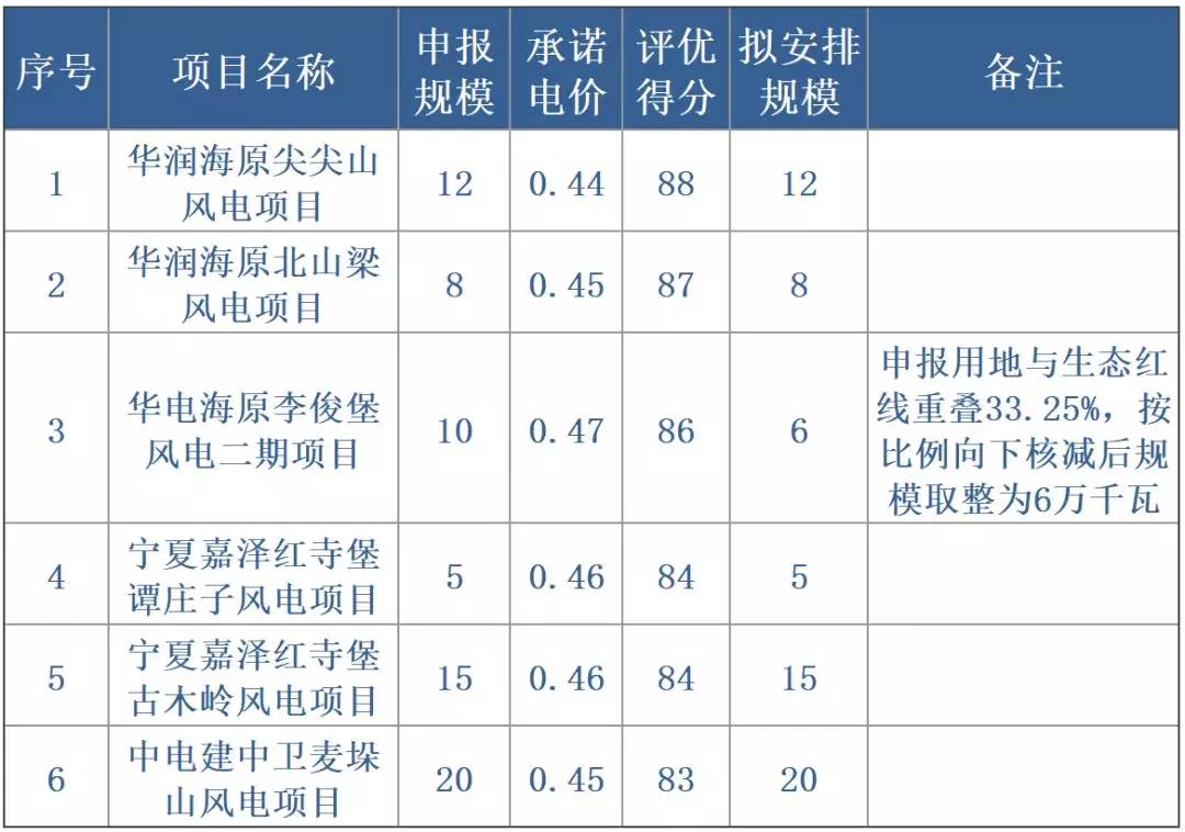 圖表:寧夏有6個(gè)風(fēng)電競(jìng)價(jià)項(xiàng)目評(píng)優(yōu)得分在80分以上