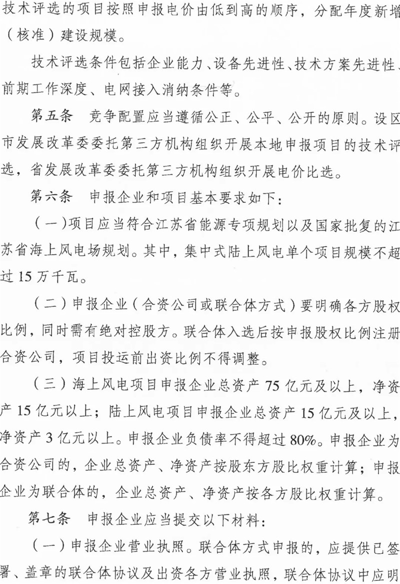 其中:江蘇省境內(nèi)已確定投資主體的集中式陸上風(fēng)電項(xiàng)目和海上風(fēng)電項(xiàng)目(不包括分散式陸上風(fēng)電、國家能源投資主管部門組織的風(fēng)電示范項(xiàng)目)新增(核準(zhǔn))建設(shè)規(guī)模的配置、上網(wǎng)電價(jià)的確定,適用《江蘇省風(fēng)電項(xiàng)目競(jìng)爭(zhēng)配置暫行辦法》。