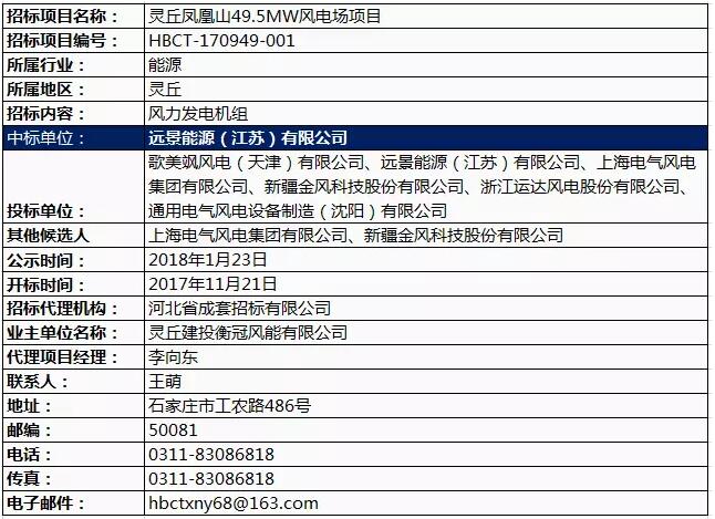靈丘建投衡冠風能有限公司靈丘鳳凰山49.5MW風電場項目風力發(fā)電機組及附屬設(shè)備中標公示