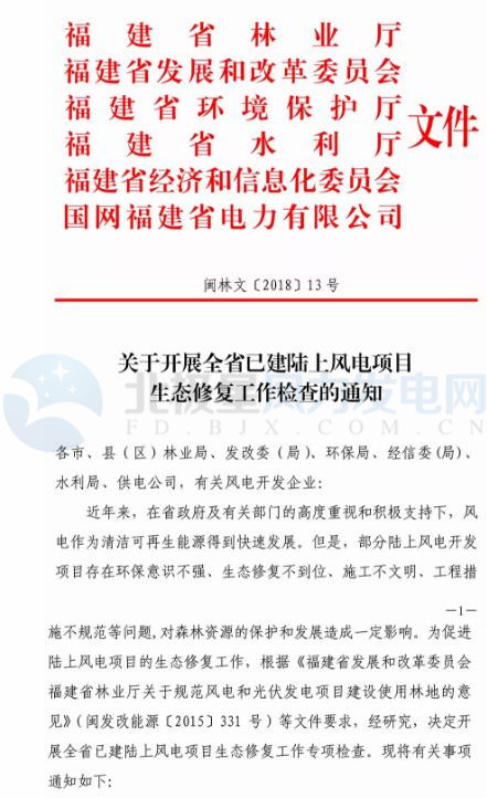 福建省林業(yè)廳:已建陸上風電項目生態(tài)修復不達標 或暫停其上網(wǎng)電費結算、列入失信名單?。ǜ酵ㄖ?/h1>