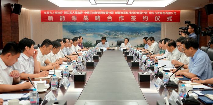 7月31日,中國三峽集團三峽新能源公司與山東省東營市人民政府、河口區(qū)人民政府、新疆金風(fēng)科技股份有限公司、中車永濟電機有限公司在北京簽署新能源戰(zhàn)略合作協(xié)議。各方將本著友好誠信、平等互利的原則,共同打造東