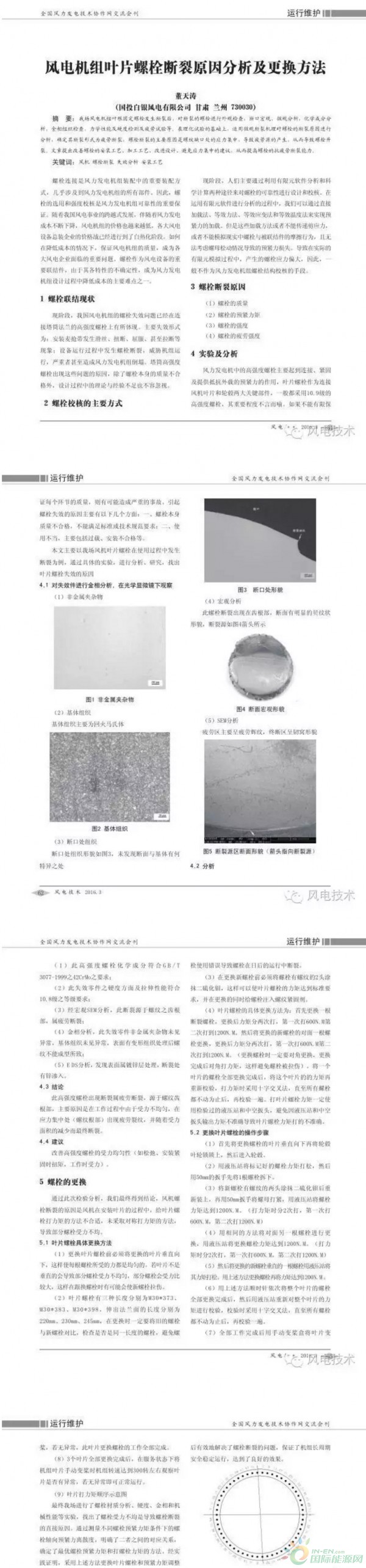 本文主要以我場(chǎng)風(fēng)機(jī)葉片螺栓在使用過(guò)程中發(fā)生斷裂為例,通過(guò)具體的實(shí)驗(yàn),進(jìn)行分析、研究,找出葉片螺栓失效的原因。