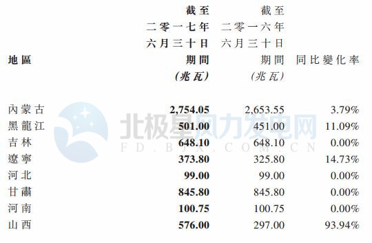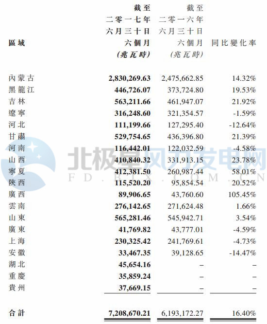 2017上半年大唐新能源風(fēng)電按地區(qū)控股發(fā)電量數(shù)據(jù)