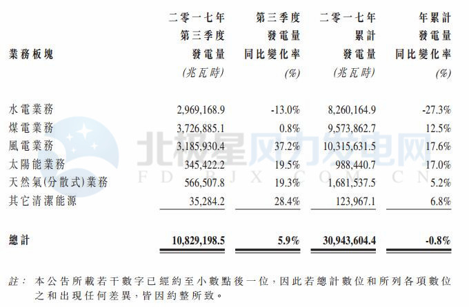 華電福新2017年第三季度風(fēng)電發(fā)電量31.86億千瓦時(shí) 同比增加37.2%