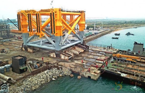 河北唐山樂亭菩提島海上風電項目導管架順利裝船