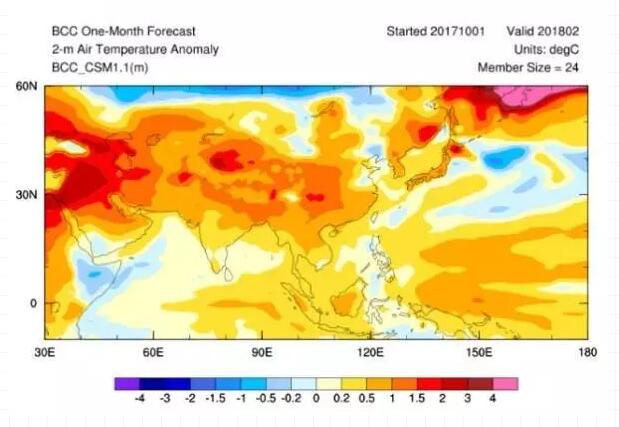 下圖為2017年12月至2018年2月的連續(xù)三個(gè)月月氣溫異常的預(yù)測(cè)統(tǒng)計(jì),可以看出明顯在2018年1月時(shí)中國(guó)中東部和南方地區(qū)氣溫低于往年的概率比較大,可能成為山地風(fēng)場(chǎng)結(jié)冰的高發(fā)月份。