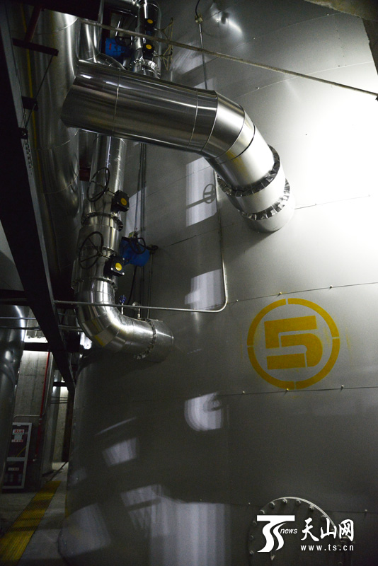 在烏魯木齊站北廣場(chǎng)能源中心,6臺(tái)10千伏電極鍋爐、9個(gè)蓄熱罐,每個(gè)蓄熱罐蓄水量在900立方米到1000立方米,既蓄熱又蓄冷,冬天可以達(dá)到供暖的要求,夏天可以制冷,確保烏魯木齊站冬天供暖和夏天制冷。