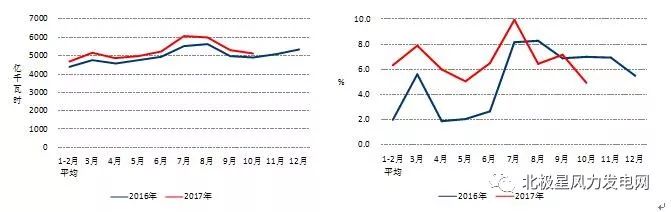 1-10月份,全國6000千瓦及以上風(fēng)電廠發(fā)電量2397億千瓦時,同比增長25.3%,增速比上年同期回落1.9個百分點。