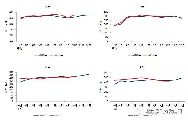圖4 2016、2017年重點行業(yè)分月用電量情況