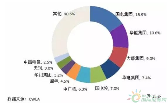 2016年中國(guó)風(fēng)電開(kāi)發(fā)企業(yè)累計(jì)裝機(jī)市場(chǎng)份額
