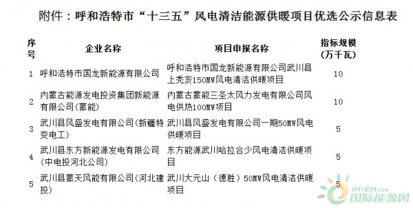 關(guān)于呼和浩特市“十三五”風(fēng)電供暖項(xiàng)目評(píng)優(yōu)結(jié)果公示