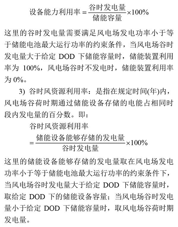 1)設備時間利用率:每年度設備實際使用的時間占計劃用時的百分比,是指設備的使用效率。由于文中采用風電場儲能電池每日一充一放的使用規(guī)則,因此,這里采用設備時間利用率評估儲能設備能夠被充分利用的時間百分比,即:
