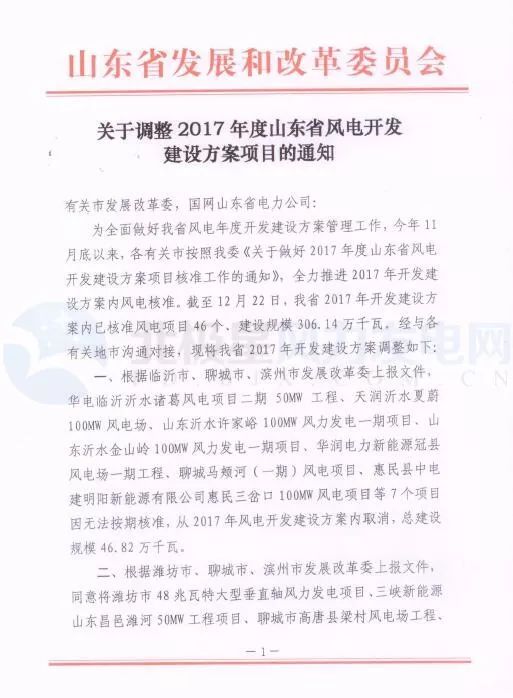 取消7個(gè) 增補(bǔ)4個(gè)!山東省發(fā)改委調(diào)整2017風(fēng)電開(kāi)發(fā)建設(shè)方案項(xiàng)目