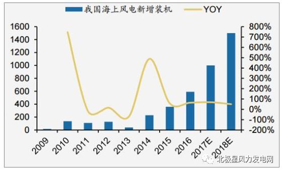 2017年,預(yù)計我國海上風(fēng)電新增裝機近1000MW,累計裝機1GW左右。到2020年,預(yù)計新增裝機超過5GW。
