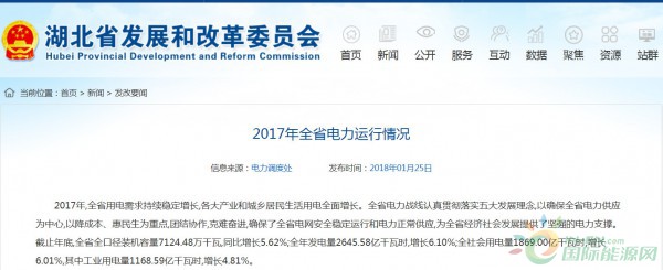 湖北發(fā)改委公布2017年全省電力運(yùn)行情況 風(fēng)電裝機(jī)252.83萬(wàn)千瓦