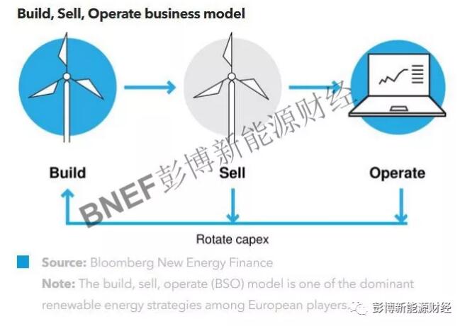 在歐洲的可再生能源BSO(建設(shè)、出售、運營)模式下,電廠先建設(shè)可再生能源資產(chǎn),而后向機構(gòu)投資者出售股份。短期來看,這種模式仍將主導(dǎo)歐洲可再生能源商業(yè)模式。