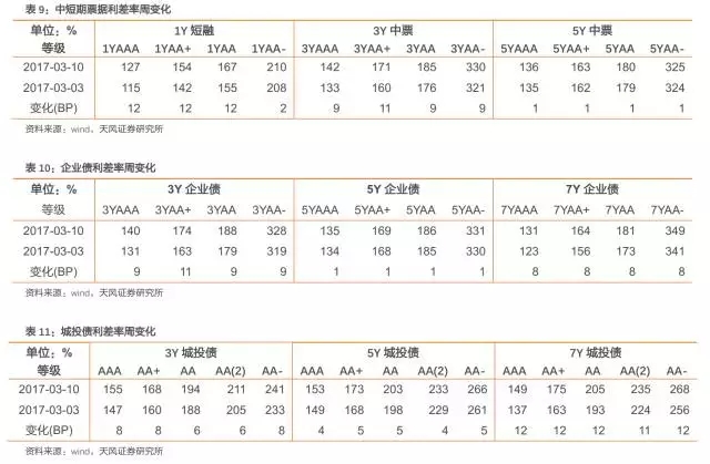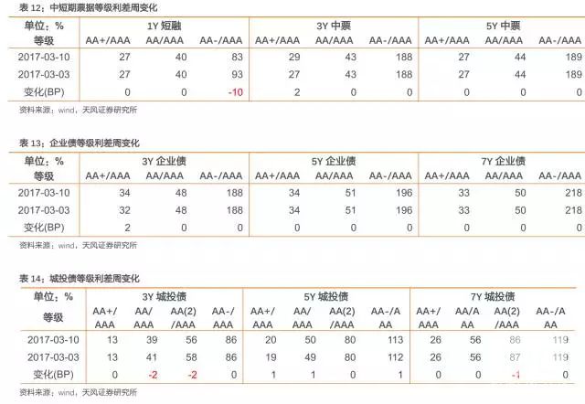 各類信用等級利差擴大縮小趨勢互相。具體來看,中短期票據(jù)收益率曲線1年期AA+、AA和AA-較AAA等級利差縮小-10-0BP,3年期等級利差擴大0-2BP,5年期等級利差縮小0-0BP;企業(yè)債收益率曲線3年期AA+、AA和AA-較AAA等級利差擴大0-2BP,5年期等級利差縮小0-0BP,7年期等級利差縮小0-0BP;城投債收益率曲線3年期AA+、AA和AA-較AAA等級利差縮小-2-0BP,5年期等級利差擴大0-1BP,7年期等級利差縮小-1-0BP。