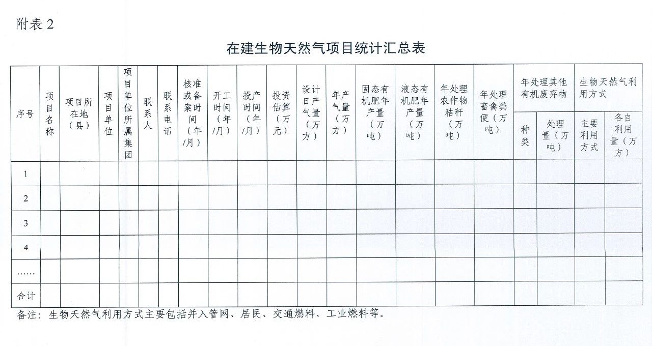 2. 在建生物天然氣項(xiàng)目統(tǒng)計(jì)匯總表