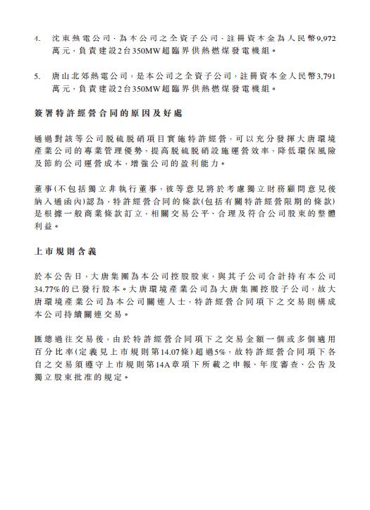 大唐發(fā)電發(fā)布公告,于20181月18日,該公司幾家子公司與大唐環(huán)境產(chǎn)業(yè)公司簽署了多份特許經(jīng)營合同,大唐環(huán)境產(chǎn)業(yè)公司同意在特許經(jīng)營期內(nèi)就公司