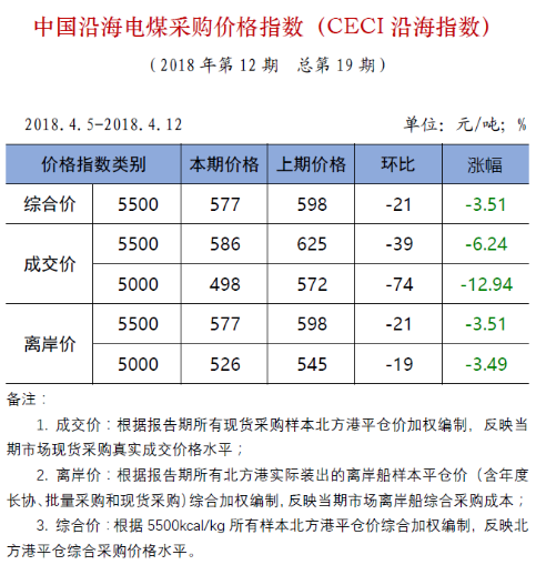 中電聯(lián)公布沿海電煤采購(gòu)指數(shù)CECI第19期:電煤價(jià)格跌破500元