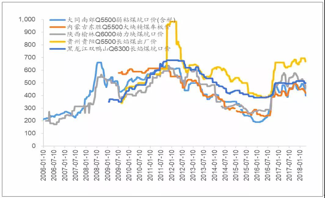 我國(guó)主要產(chǎn)地煤價(jià)(單位:元/噸)